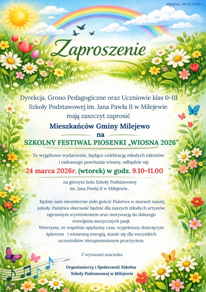 Zaproszenie – SZKOLNY FESTIWAL PIOSENKI „WIOSNA 2026” Małgorzata2026-03-09T11:28:10+01:009 marca, 2026|Aktualności|