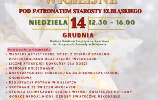 Zapraszamy do obejrzenia galerii zdjęć z Milejewskiego Spotkania Wigilijnego, które odbyło się 14 grudnia 2025 roku. Wydarzenie zostało zorganizowane przez Gminę Milejewo i objęte Patronatem Starosty Elbląskiego. Było to wyjątkowe spotkanie pełne świątecznej atmosfery – [...]